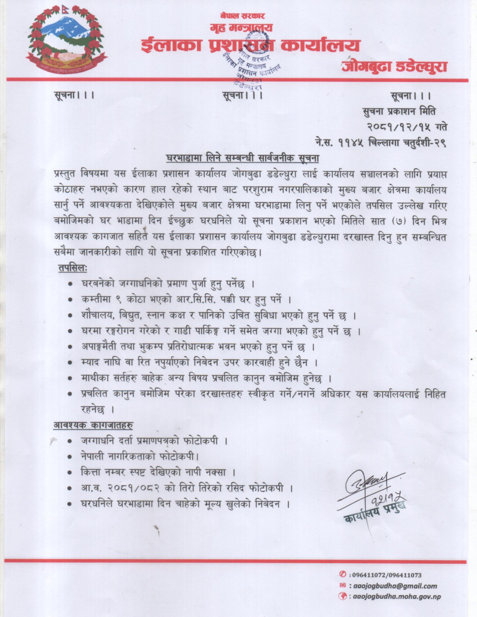 घर भाडा सम्बन्धी सूचना